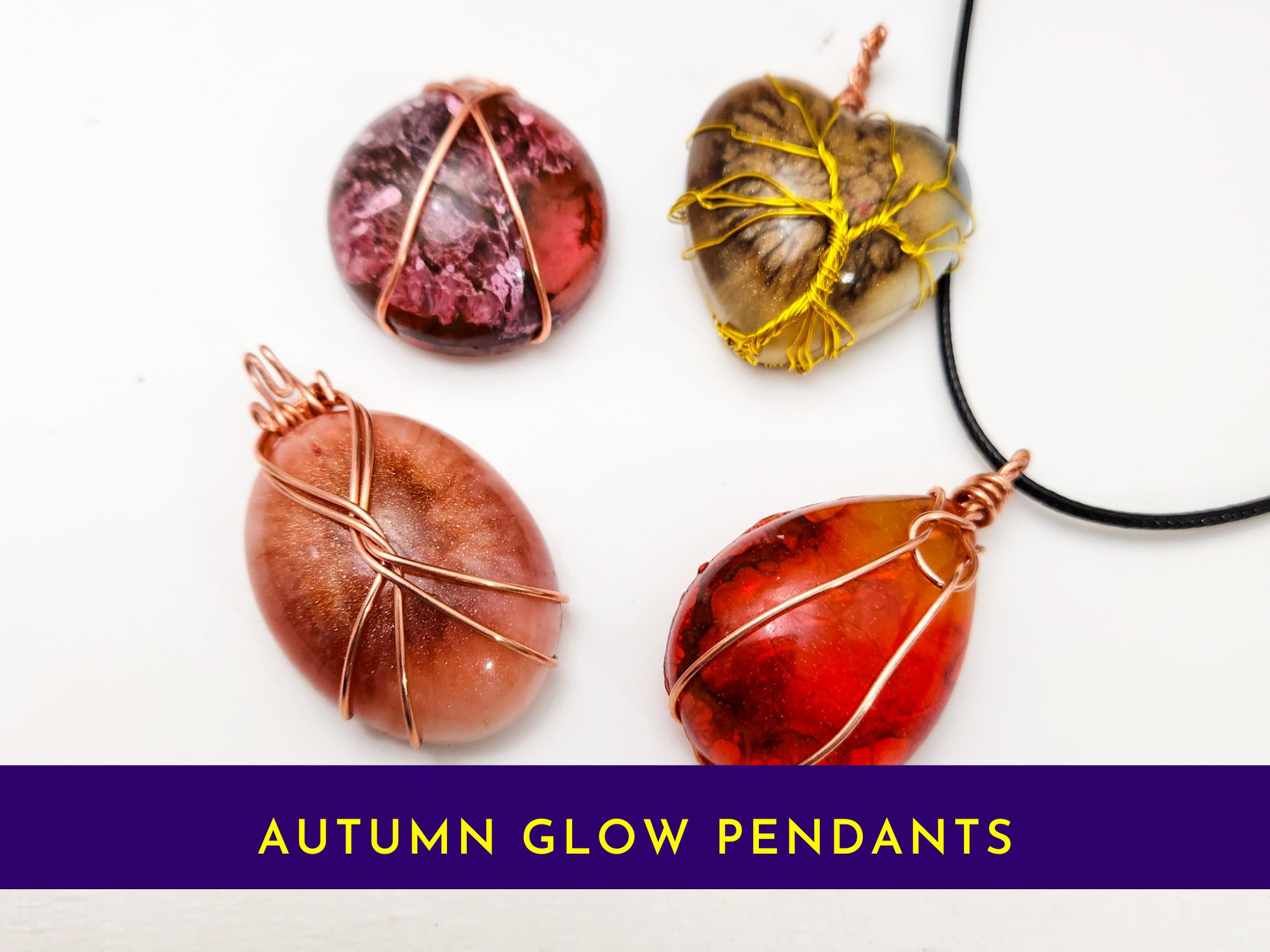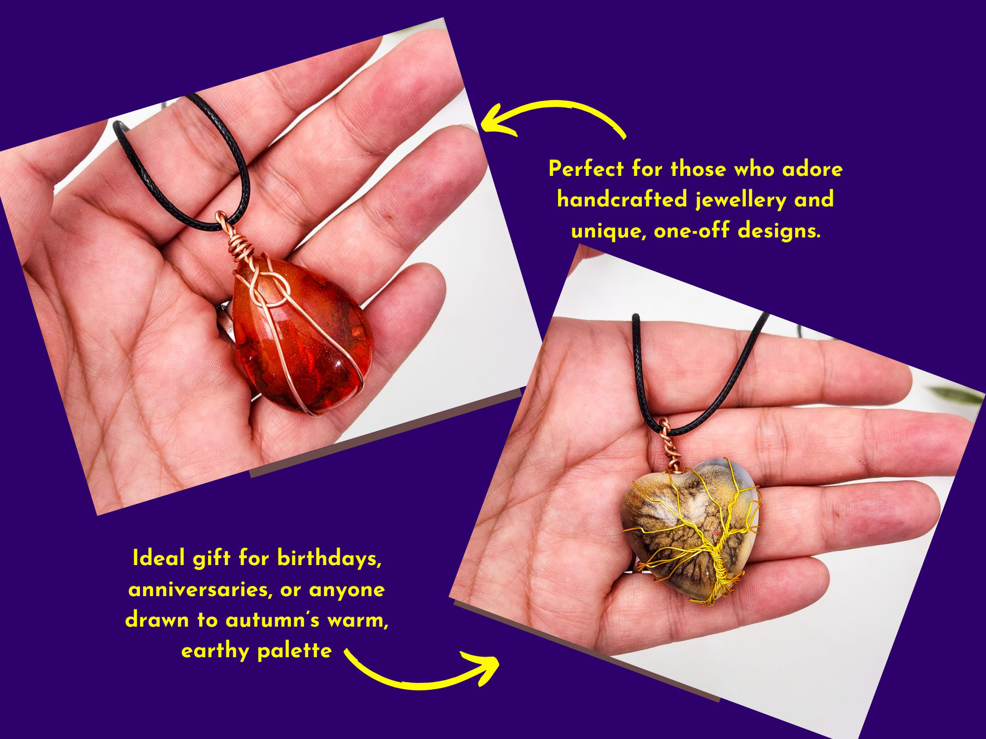 A one-of-a-kind handcrafted resin pendant wrapped in jewellery wire—capturing autumn’s glow in wearable form.