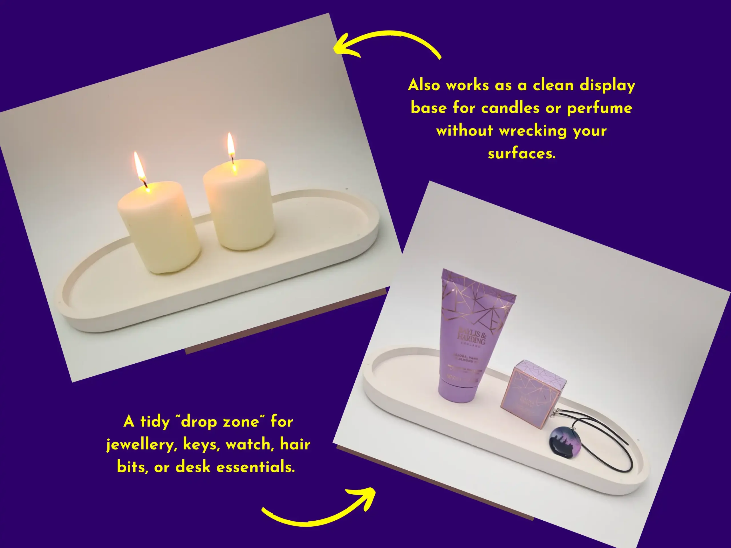 This large oval tray is hand-poured using AquaCast eco resin, sealed for extra protection, and finished with cork feet to stop slips and scratches. Minimal shape, loads of uses: catchall tray, vanity tray, bedside tray, desk organiser, or a simple base for styling bits around the house.