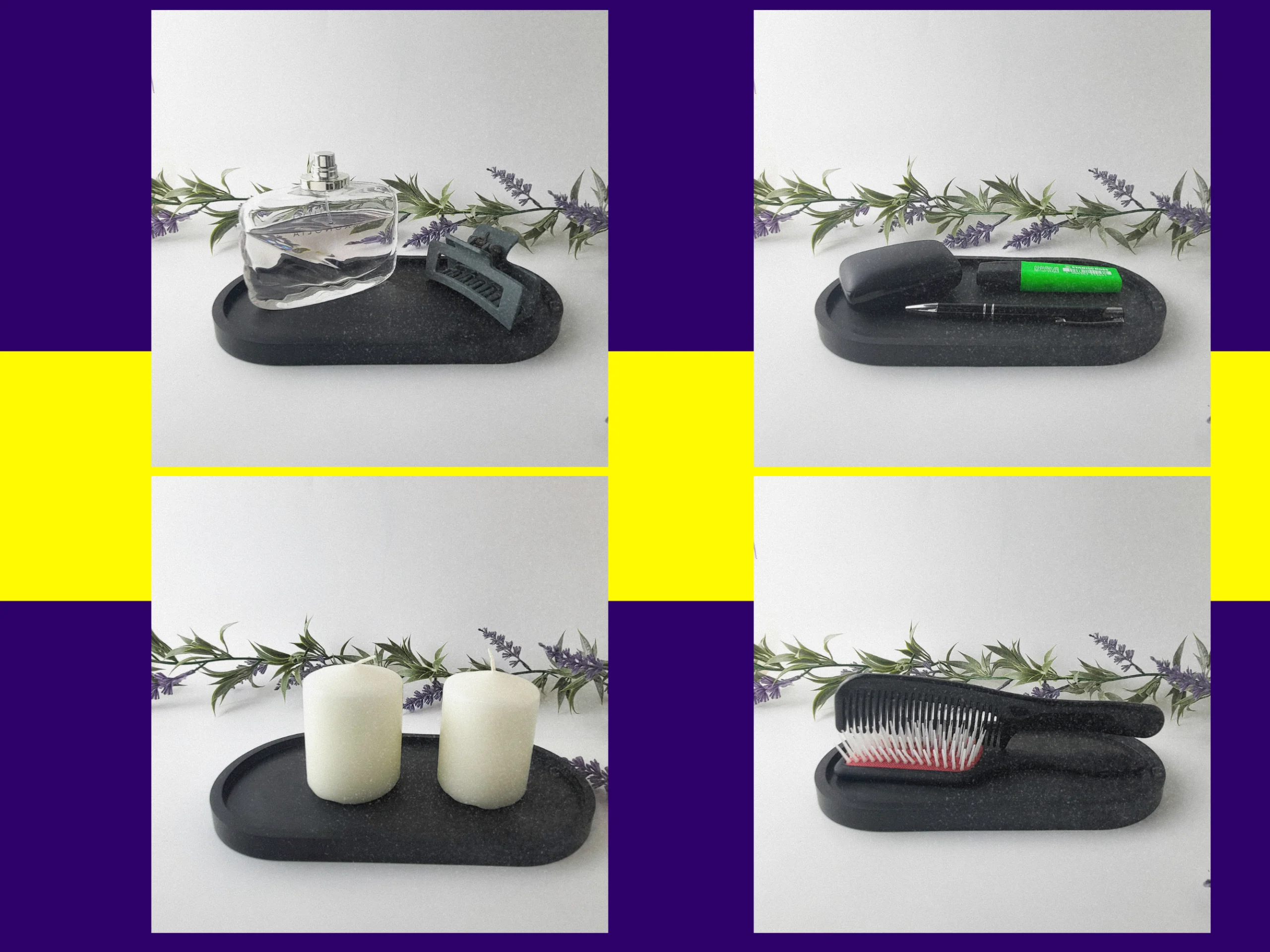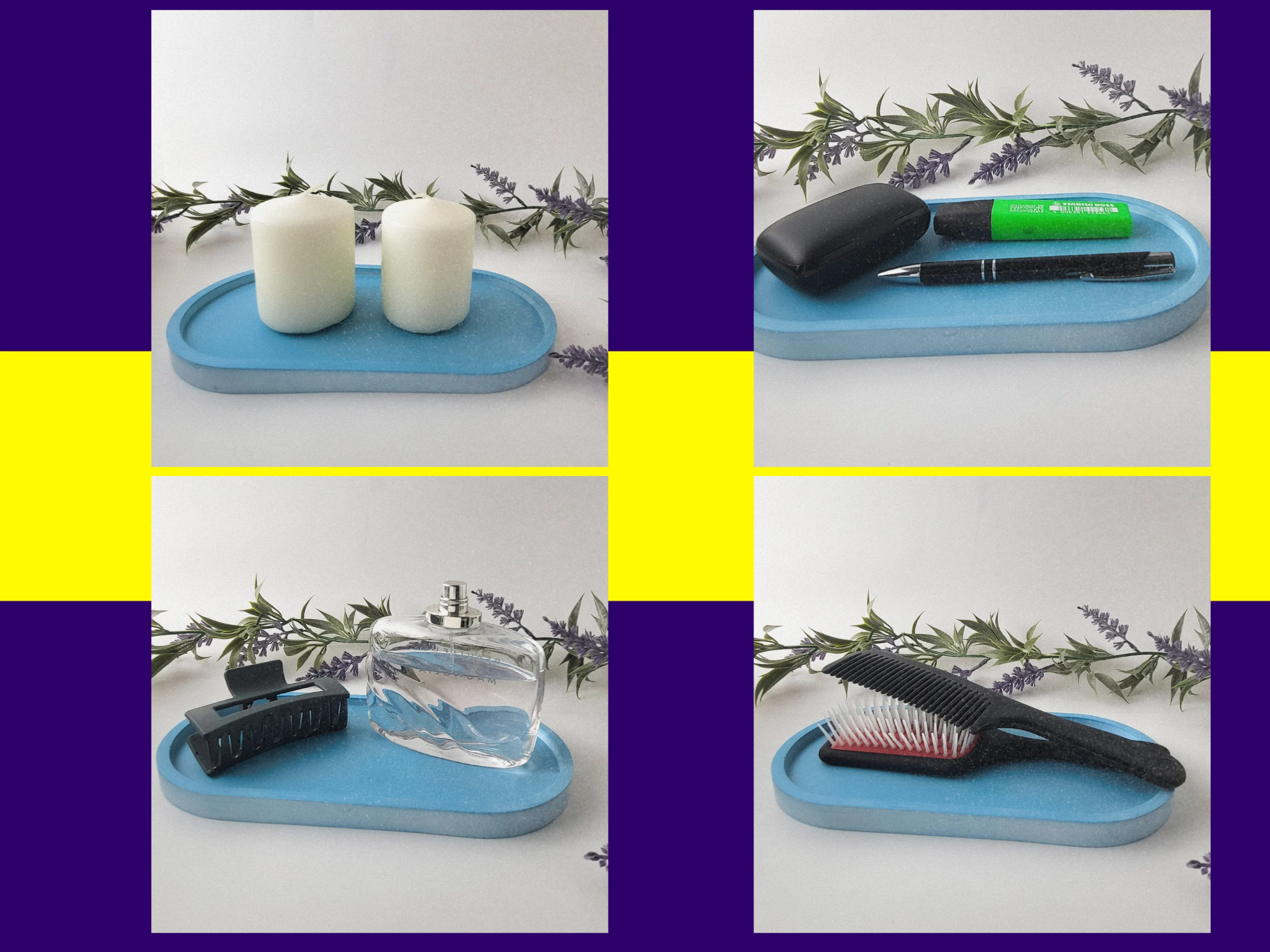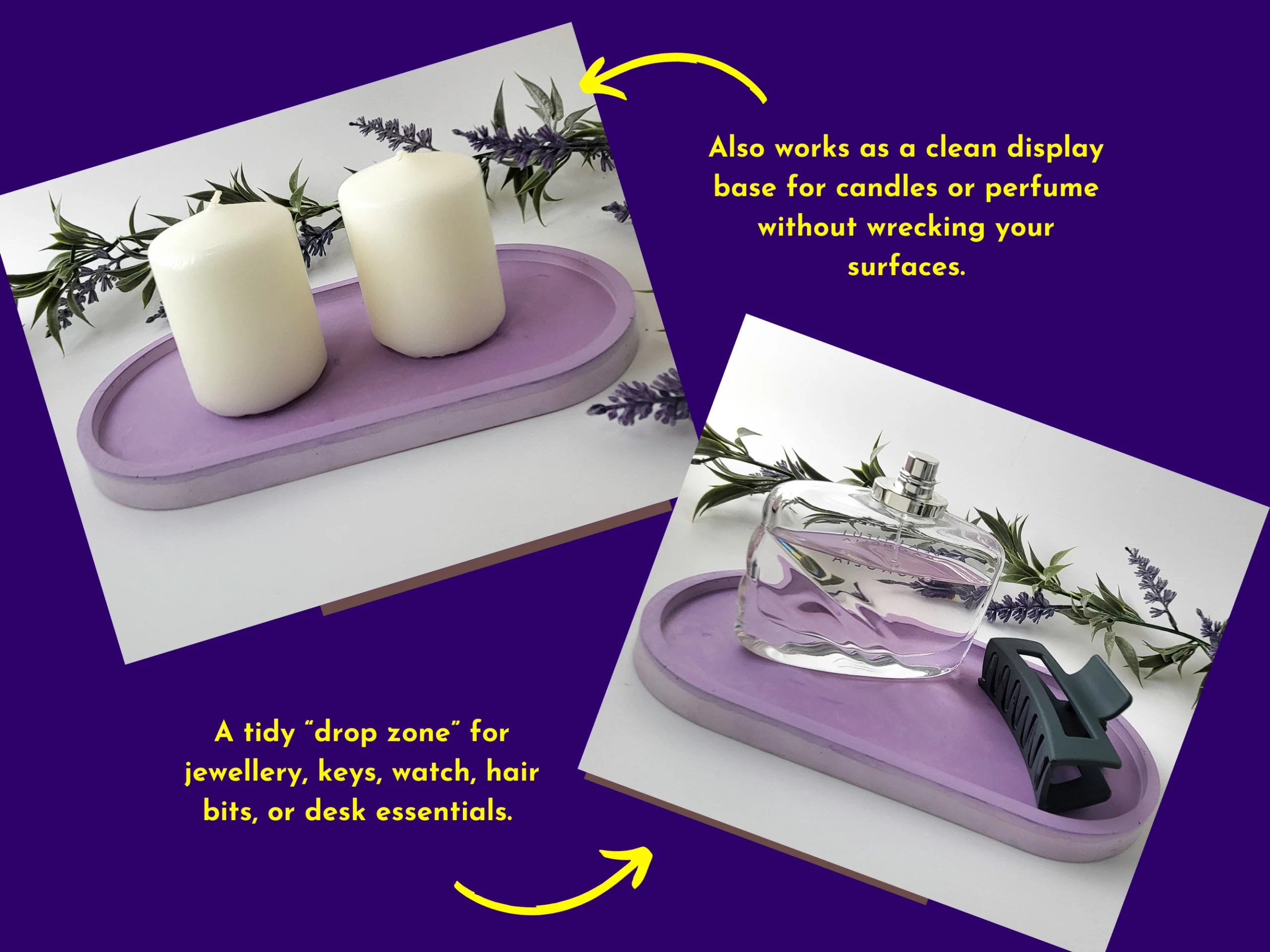 This large oval tray is hand-poured using AquaCast eco resin, sealed for extra protection, and finished with cork feet to stop slips and scratches. Minimal shape, loads of uses: catchall tray, vanity tray, bedside tray, desk organiser, or a simple base for styling bits around the house.