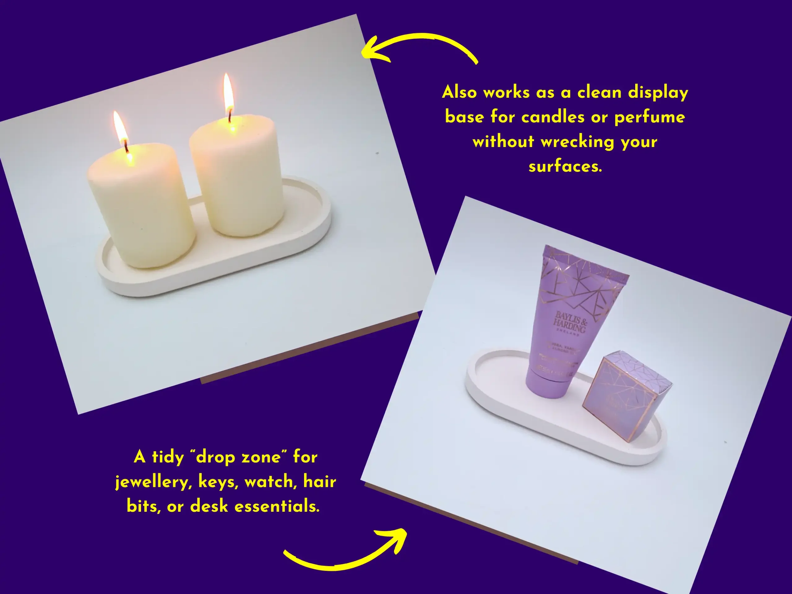 This medium oval tray is hand-poured using AquaCast eco resin, sealed for extra protection, and finished with cork feet to stop slips and scratches. Minimal shape, loads of uses: catchall tray, vanity tray, bedside tray, desk organiser, or a simple base for styling bits around the house.