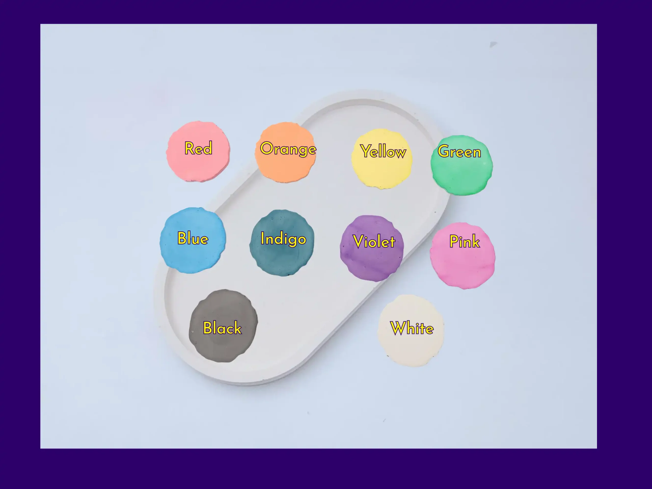 Available colours: red, orange, yellow, green, blue, indigo, violet, pink, black, and white. Also available in small, medium, and extra large.